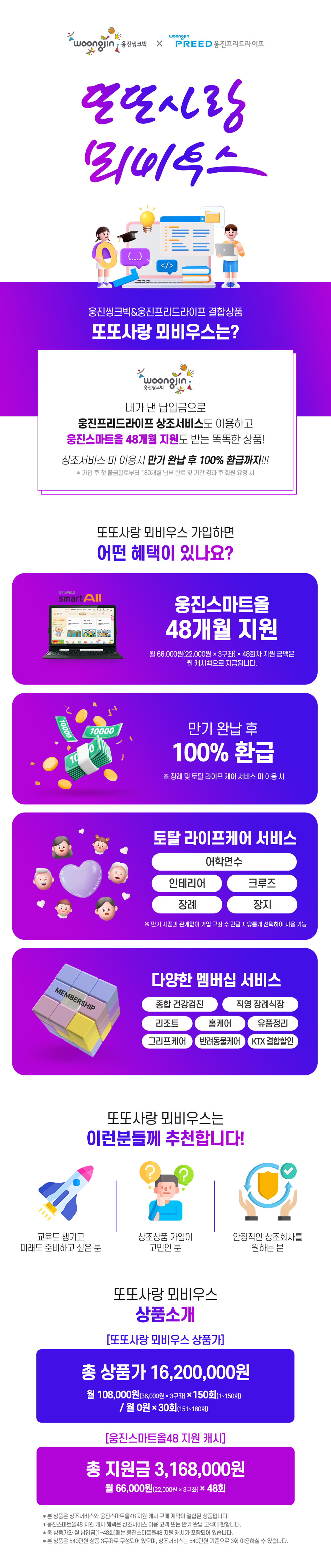 웅진프리드라이프 고객만을 위해 최고의 라이프스타일 혜택을 제공합니다.