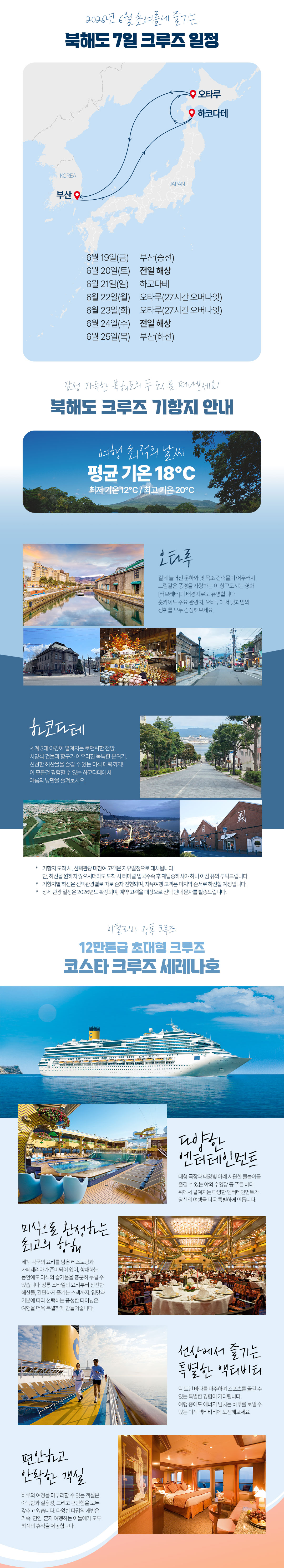 [업계 최초★단독 전세선] 북해도 크루즈 7일 얼리버드 이벤트!! (26년 6월 19일 출발)