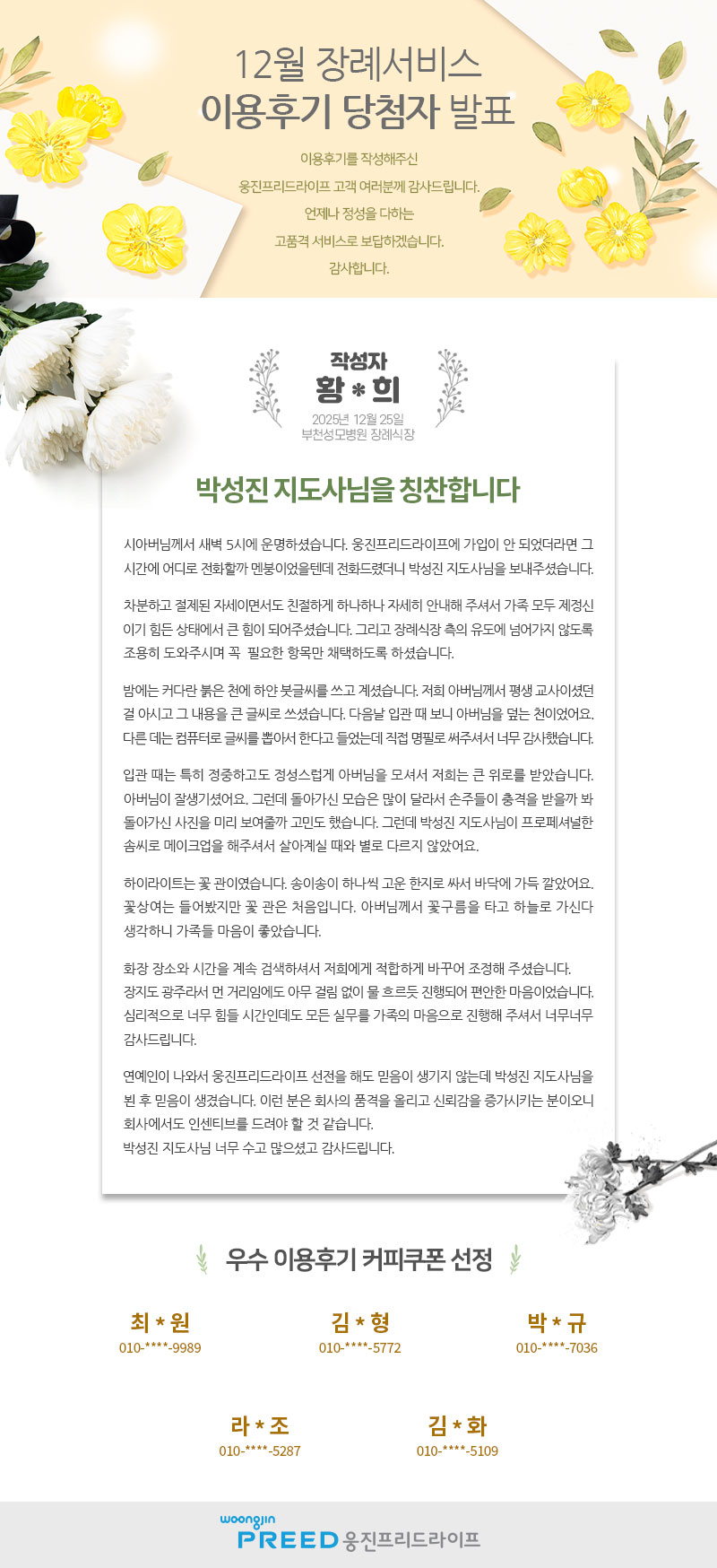 [발표] 2025년 12월 장례서비스 우수 이용후기 선정