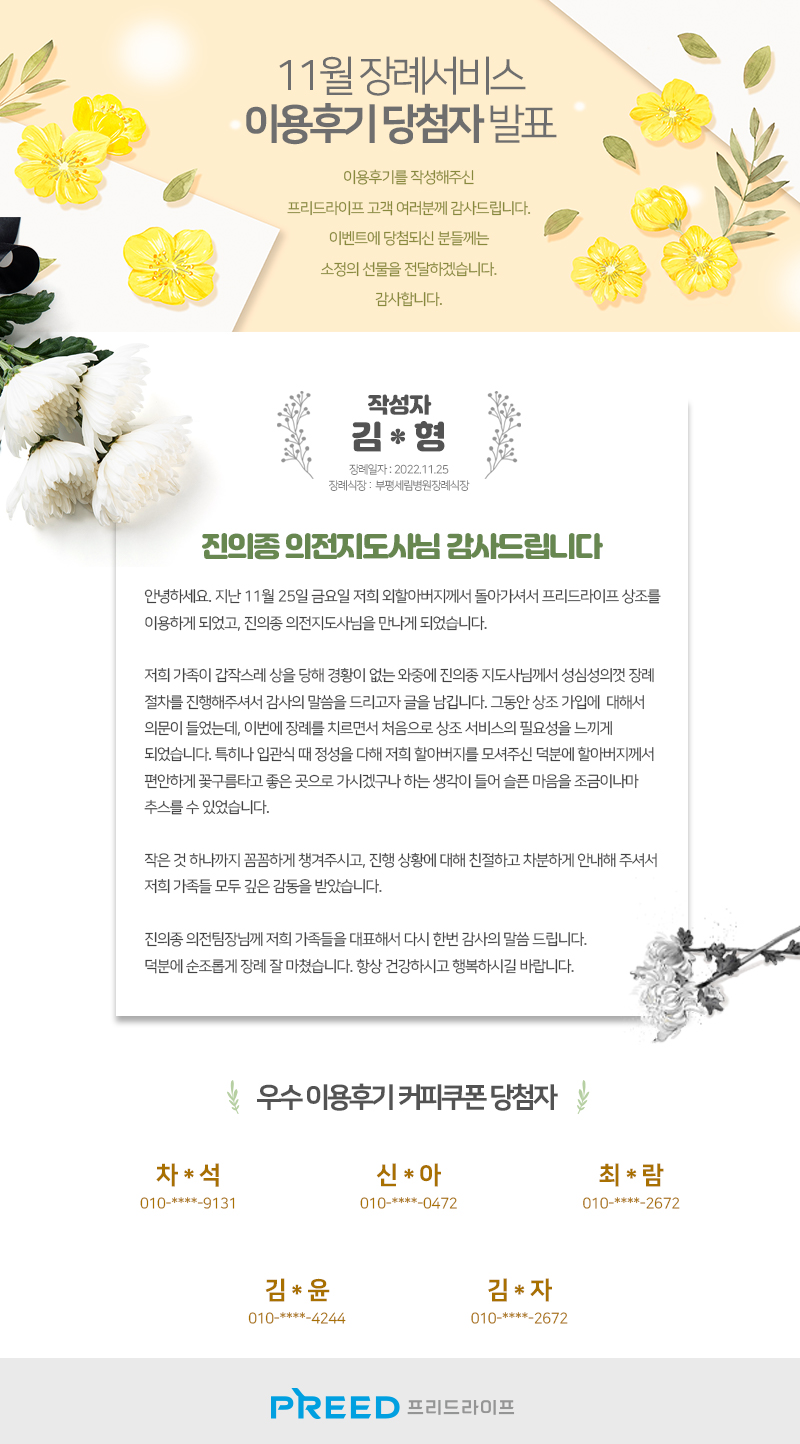 [발표] 11월 장례서비스 우수 이용후기 선정