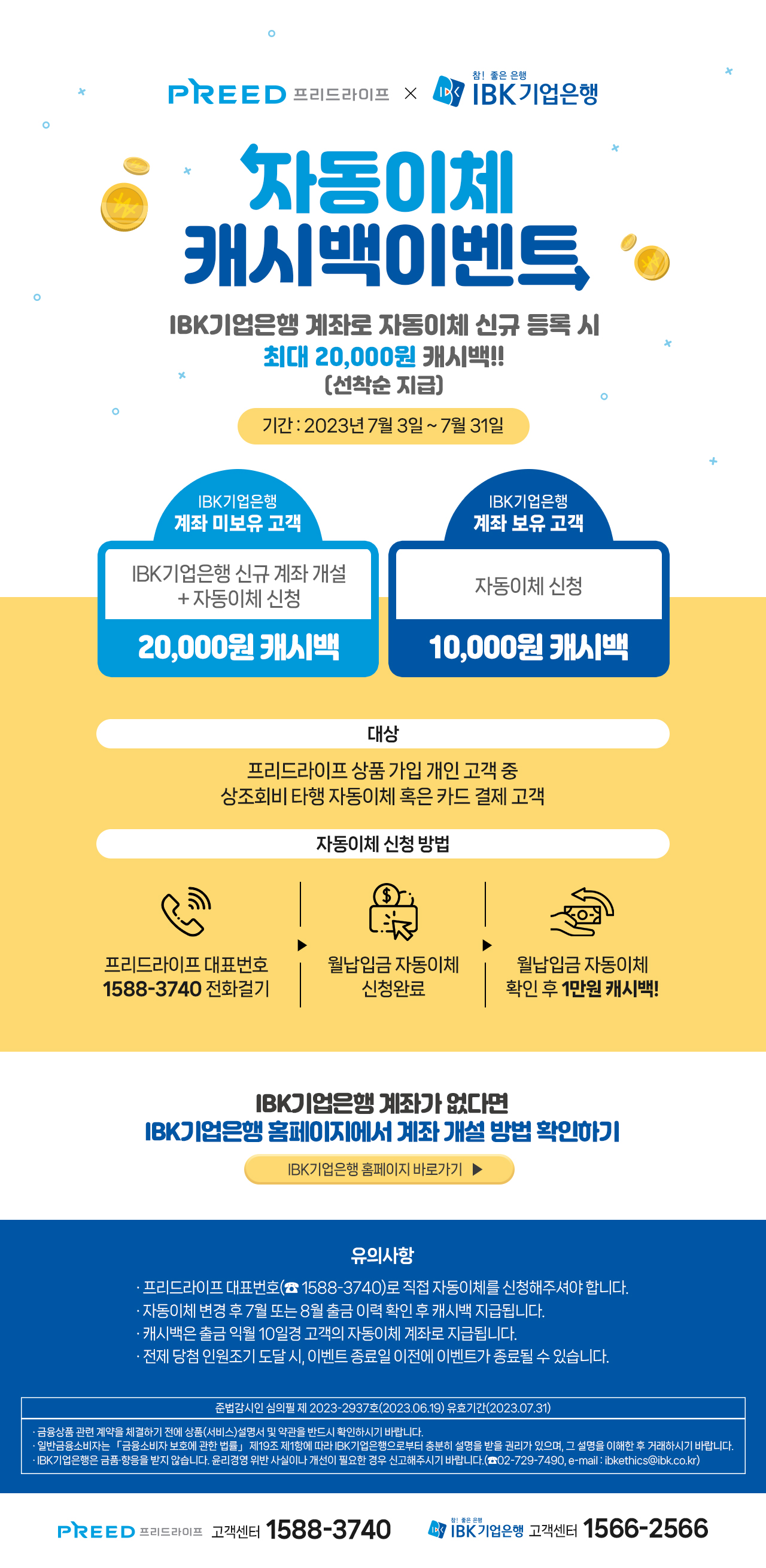 [이벤트] IBK기업은행 자동이체 캐시백 이벤트 시행(7월)