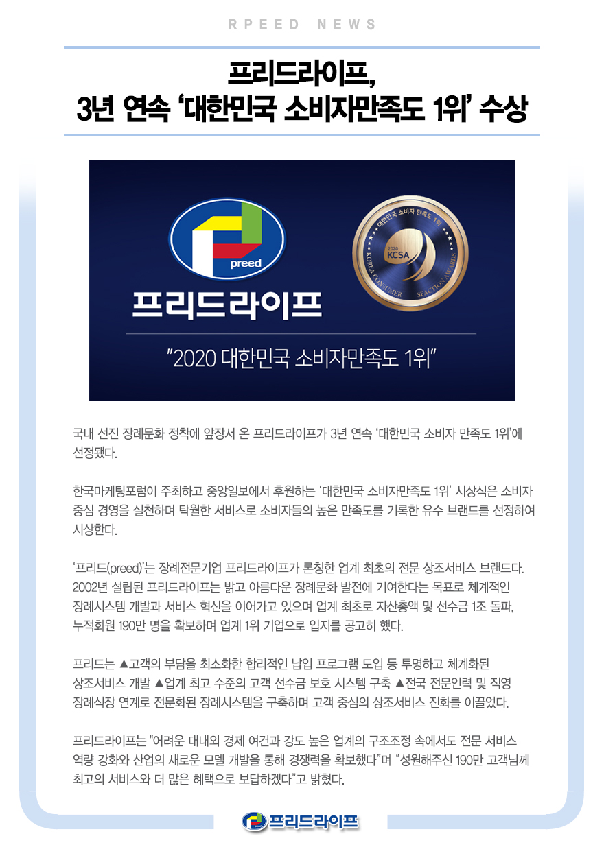 [보도] 프리드라이프, 3년 연속 대한민국 소비자만족도 1위 수상