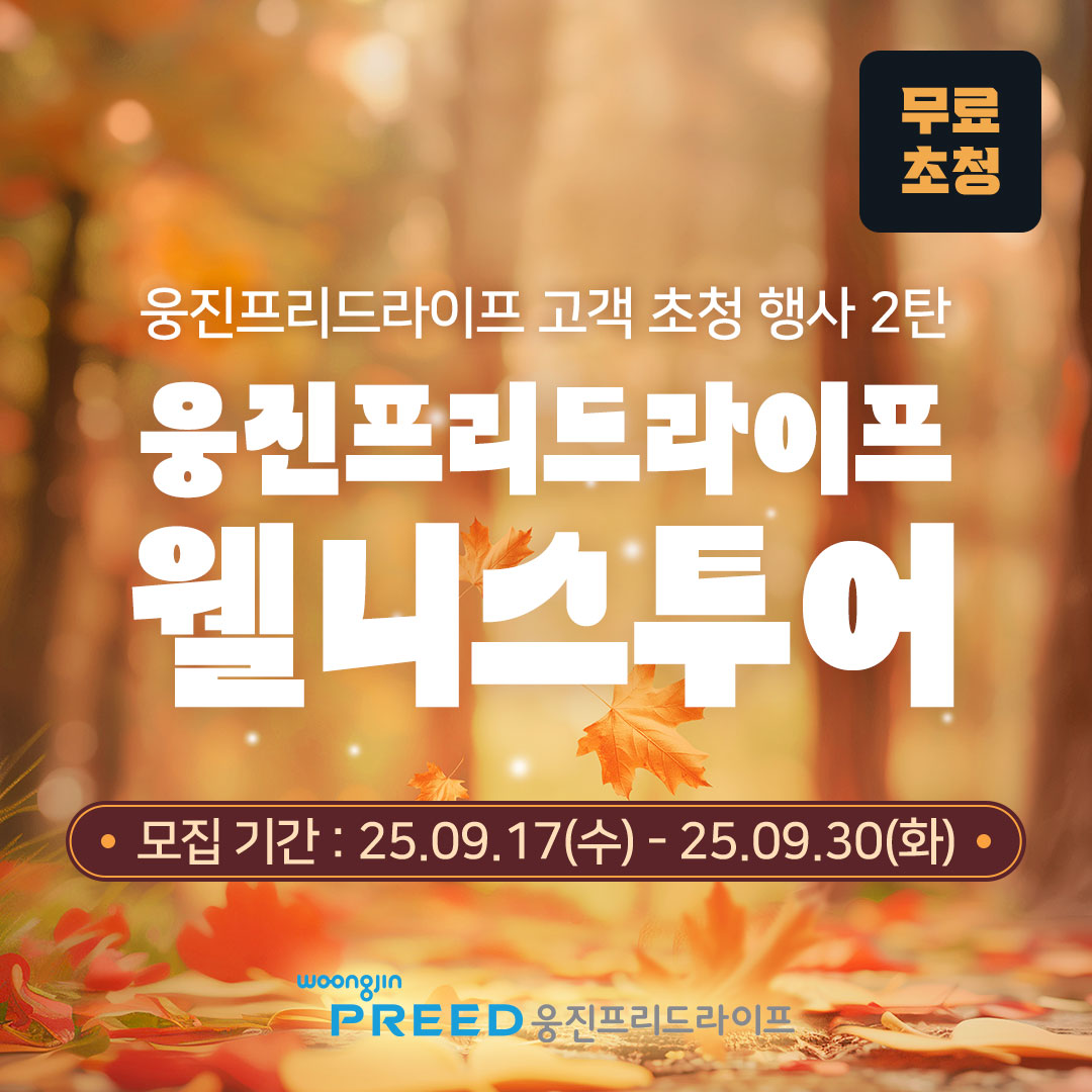 종[무료 초청 이벤트] 웅진프리드라이프 웰니스투어 (~9/30)