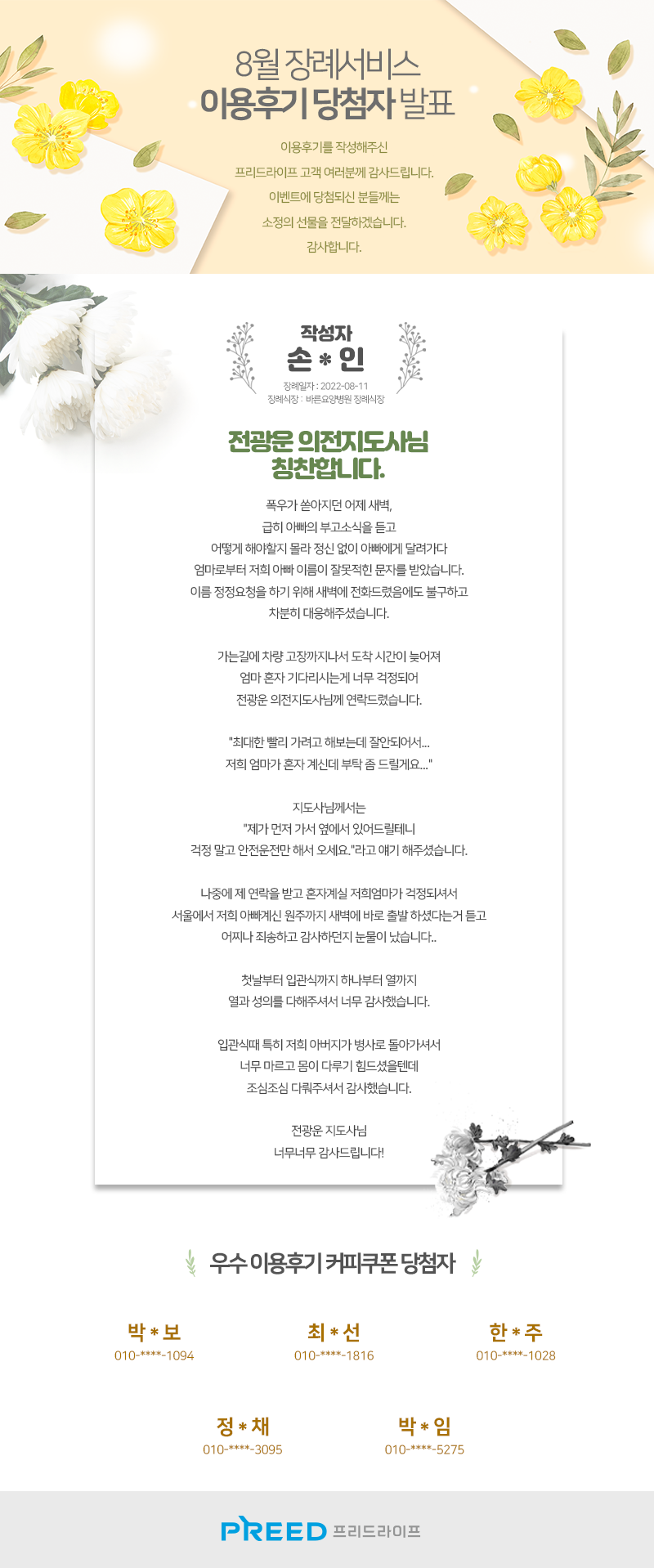 [발표] 8월 장례서비스 우수 이용후기 선정